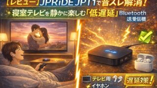 JPRiDE JPT1を実際に使ってレビュー。寝室テレビの音漏れ対策にBluetoothイヤホンを活用し、音ズレや遅延、音質、ゲーム用途の注意点まで正直に解説します。