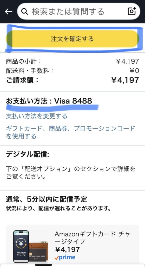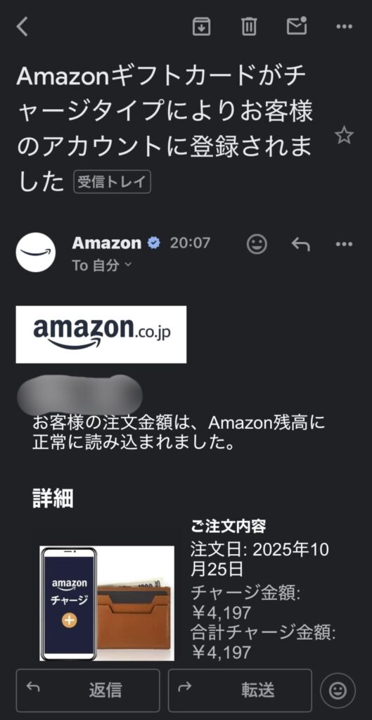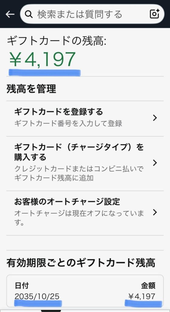 10.手順2と3を行い、Amazonギフトカード残高が更新されていれば完了!