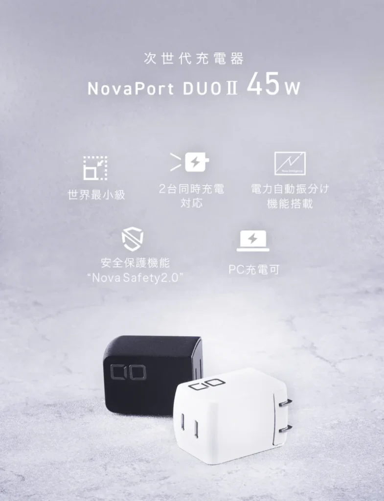 ミニマルでありながらパソコンもスマホも充電できる45Wクラスは貴重です。 特にCIOのNovaPort DUOⅡはデザイン・質感・機能の三拍子がそろった名品。