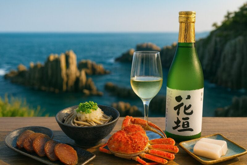 - ふるさとの味と一献:越前そば。越の鷹のキレのある味わいが、そばの香りと風味を引き立て、福井の伝統的な郷土料理を楽しめます。