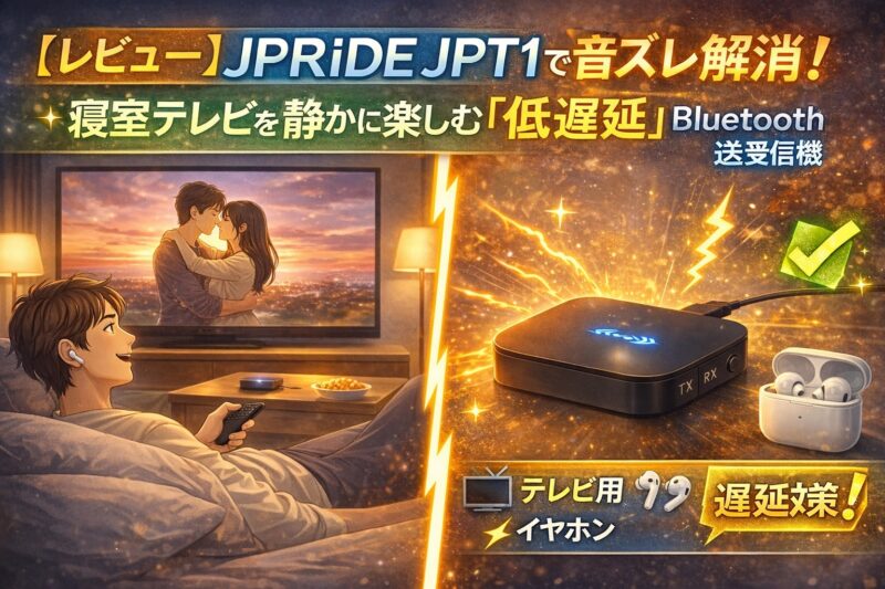 【レビュー】JPRiDE JPT1で音ズレ解消!寝室テレビを静かに楽しむ「低遅延」Bluetooth送受信機
