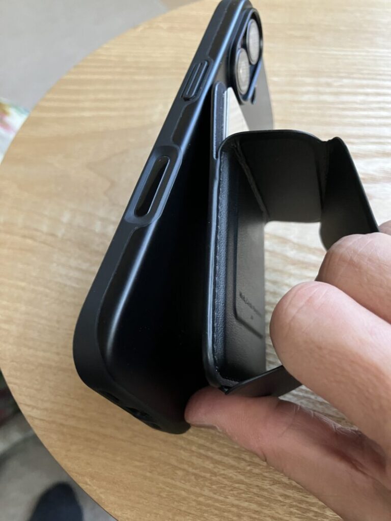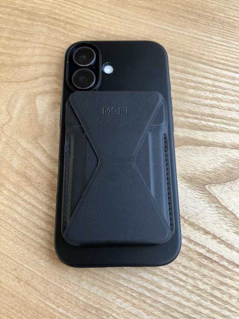 実際、私は最近までiPhone 13 miniを使用していました。その後、iPhone 17へ機種変更。機種変更後もしばらく旧型MOFTを使っていましたが、ポケットに入れたときなどにわずかにズレやすい感覚がありました。