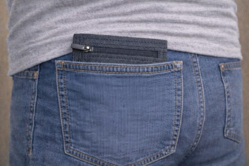 フラットワレットはスマホより小さく、ポケット内でもかさばらない。